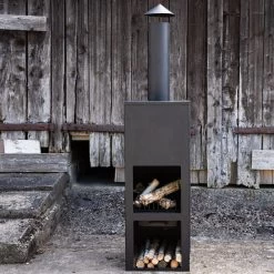 Uppsala, onze luxe vuurhaard voor buiten die snel voor een gezellige sfeer op je terras zorgt! Het ontwerp is stijlvol met rechte Scandinavische vormen en heeft een ronde schoorsteen.