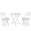 Deze vrolijke set bestaat uit een kleine ronde tafel en twee comfortabele stoelen. De stoelen zijn gemaakt van een stevige en bijzonder onderhoudsvriendelijke bedrading van wit kunststof rotan gecombineerd met een stevig, zwart stalen frame. De tafe