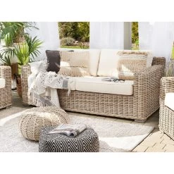 Met deze comfortabele tuinset kun je je gedachten laten afdwalen. Het bestaat uit een tweezitsbank en twee fauteuils van hoge kwaliteit hout. Deze rotan set verfraait elk terras of balkon en past bij vele inrichtingsstijlen.