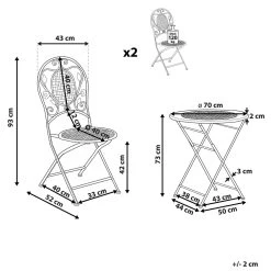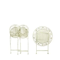 Voeg een vleugje Provençaalse stijl toe aan je balkon of tuin met deze elegante balkonset. De bistroset is gemaakt van gepoedercoat ijzer en heeft een verweerd effect en een opengewerkt ontwerp met bloemenornamenten. De balkonset bevat twee stoelen