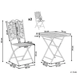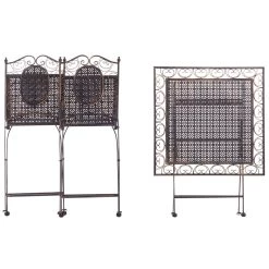 Breng wat romantische sfeer in huis en geniet van een ontbijt op je balkon met deze vintage-geïnspireerde set van twee stoelen en een tafel. De bistroset is gemaakt van hoogwaardig, gepoedercoat ijzer en zal je jarenlang van dienst zijn. Elk stuk ka