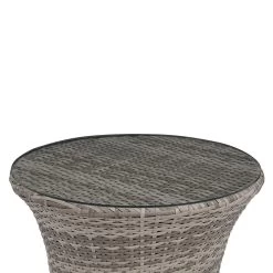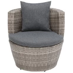 Deze moderne tuinset is een prachtige aanvulling op elk terras, tuin of balkon. Het wordt compleet geleverd met twee uiterst comfortabele fauteuils die zijn ontworpen met bijpassende zitkussens. De grijze polyester hoezen zijn onderhoudsvriendelijk