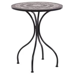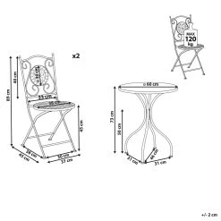 Geniet van een kopje thee in de zon met deze charmante bistroset voor buiten. Perfect voor kleine en grote ruimtes, het heeft gebeeldhouwde rugleuningen en een intrigerend mozaïekpatroon gemaakt van keramische tegels. Style het in je achtertuin of b