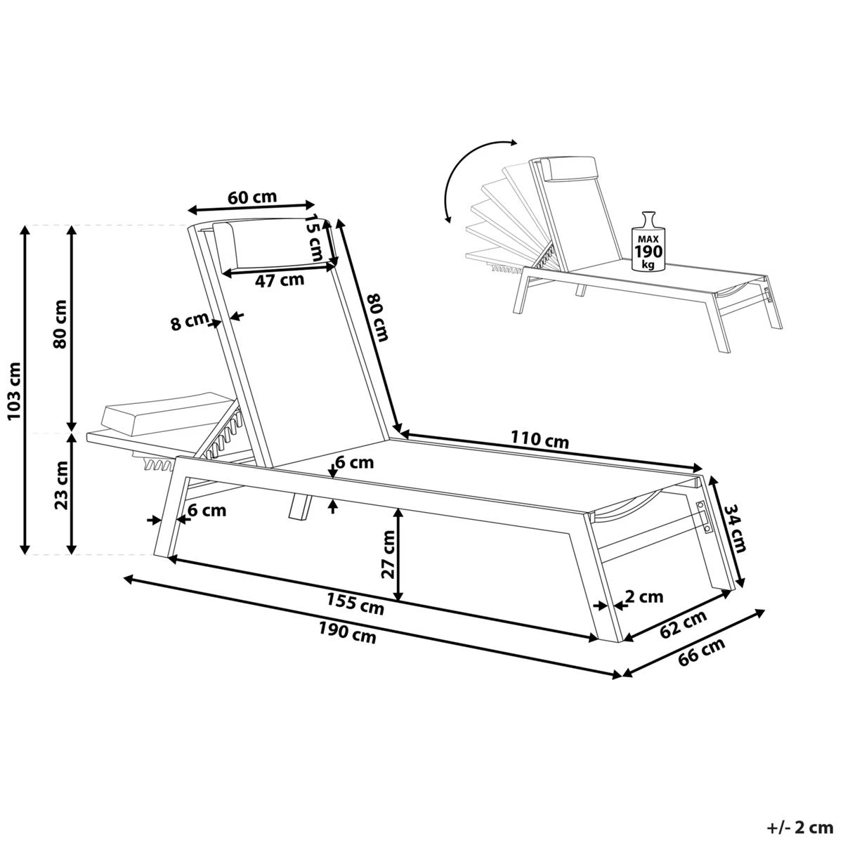 Maak van je zonnige middag de best mogelijke ervaring met de strakke tuinligstoel. Gemaakt van gepoedercoat, roestvrij aluminium met stevige maar flexibele kunststof, heeft deze ligstoel een uitzonderlijke levensduur en comfort. Een verstelbare rugl