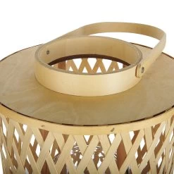 Creƫer een gezellige sfeer met deze bamboelantaarn die een natuurlijk en organisch accent toevoegt aan elke woonomgeving. Het ingewikkelde ontwerp is zorgvuldig met de hand geweven en creƫert een warme en uitnodigende sfeer wanneer er een kaars in h
