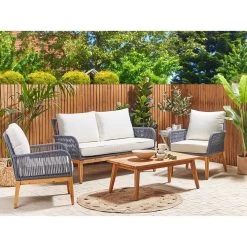 Met deze stijlvolle tuinset breng je de zomer in je tuin of op het terras. De kleurencombinatie van licht acaciahout met de zwarte armleuningen in strut-design geven de set een modern tintje en dankzij de comfortabele gestoffeerde kussens is een hoo