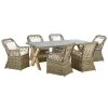 Als je op zoek bent naar een comfortabele eetset voor in je tuin, dan is deze een droom oplossing. De stoelen zijn gestoffeerd in een dikke laag materiaal met hoge armleuningen zodat je voldoende steun hebt en ze passen ook perfect bij de tafel. De