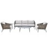 Met deze buitenset wordt loungen en afspreken met vrienden tijdens warme dagen zeker een plezier. Er staan twee diepe fauteuils, een comfortabele tweezitsbank en een salontafel waarop je lekkere hapjes en drankjes kunt zetten. Meubels zijn gemaakt