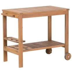 Deze tuinset is perfect voor 6 personen. De eenvoudige vorm en de natuurlijke kleur zijn ongetwijfeld de hoogtepunten van deze set. Een bijzonder element van de set is de ondersteunende theewagen, waarin u drankjes of andere accessoires kunt plaatse