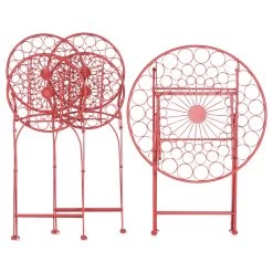 Creëer een romantische sfeer op je balkon of terras met deze charmante tuinset. Hij bestaat uit twee stoelen en een ronde tafel in felle rode kleur. Het prachtige ontwerp is geïnspireerd door de Provençaalse stijl en combineert stijl en functionalit