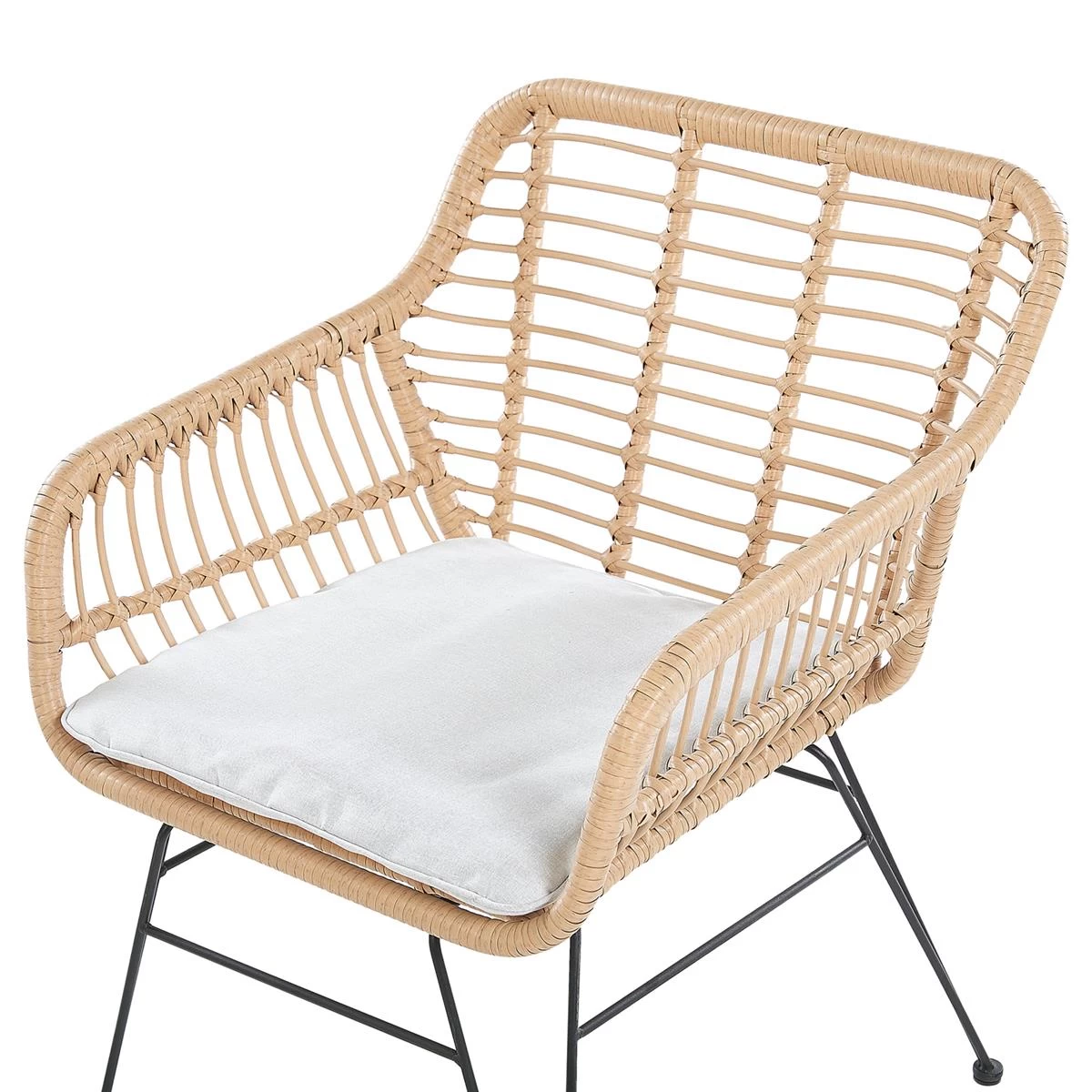 Deze zonnige tuinset met slanke vormen, een delicaat ontwerp en een luchtige look is precies wat je zoekt voor een afgelegen plek in de tuin of op het balkon. De 3-delige set bestaat uit twee comfortabele rieten tuinstoelen met prachtig gebogen arml
