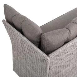 Tijdloze sfeer voor lange zomeravonden met familie en vrienden. Deze robuuste en tegelijkertijd gezellige lounge set gemaakt van grijs polyrattan is weersbestendig en slijtvast en dankzij de grote hoekbank en de praktische bank biedt deze ruimte gen