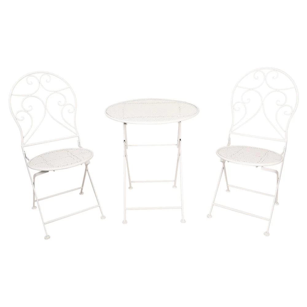 Wit metalen vintage bistro setje van het merk Clayre & Eef Balkonset Tuinset