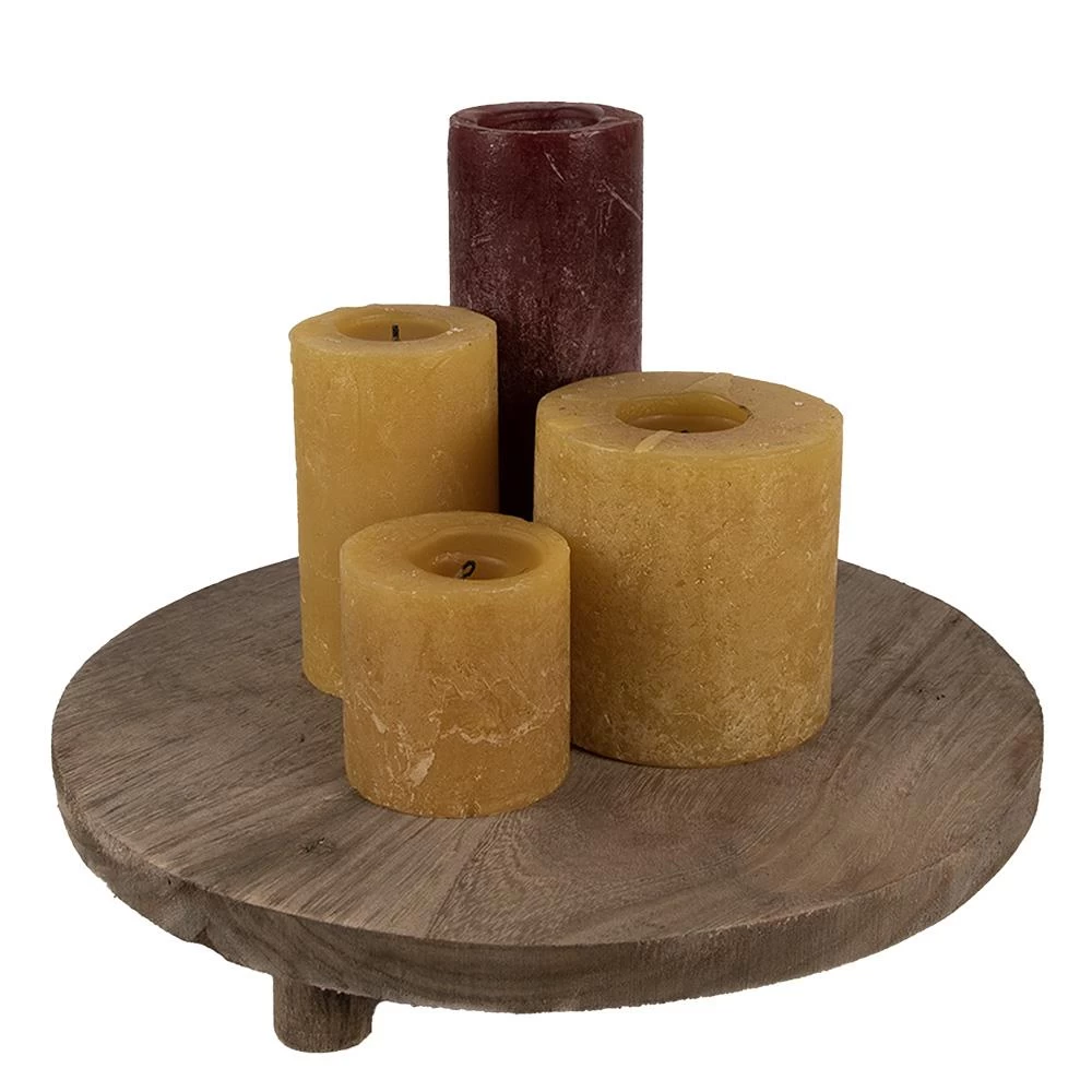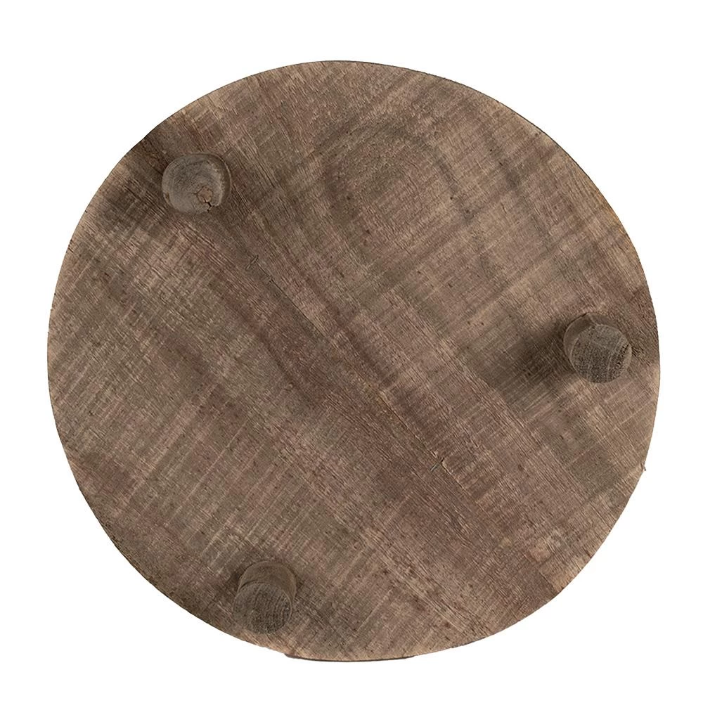 Robuust, rond, bruin houten plantentafeltje, in een landelijke stijl, van het merk Clayre & Eef. Ieder plantentafeltje is uniek