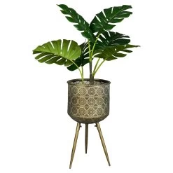 Dutchbone weet goed wat hip is! Deze goudgroenen bloempot met standaard gaat helemaal met de trends mee. Met een mooie kamerplant in deze Botanique fleur je jouw huis helemaal op. De gouden pootjes geven hem een luxe uitstraling.