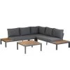 De San Vito is gemaakt van een aluminium frame met daaromheen natural rotan wicker vlechtwerkdraad. De loungeset wordt geleverd inclusief polyester waterafstotende loungekussens. De totale loungeset heeft een afmeting van 380 x 165 x 77,5 cm.