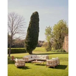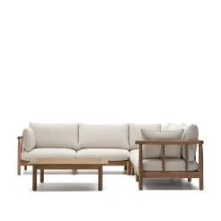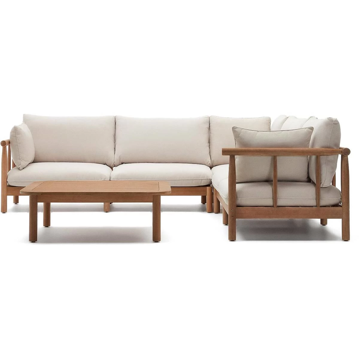 Set Sacova 5-zits hoekbank en salontafel in eucalyptus massief hout