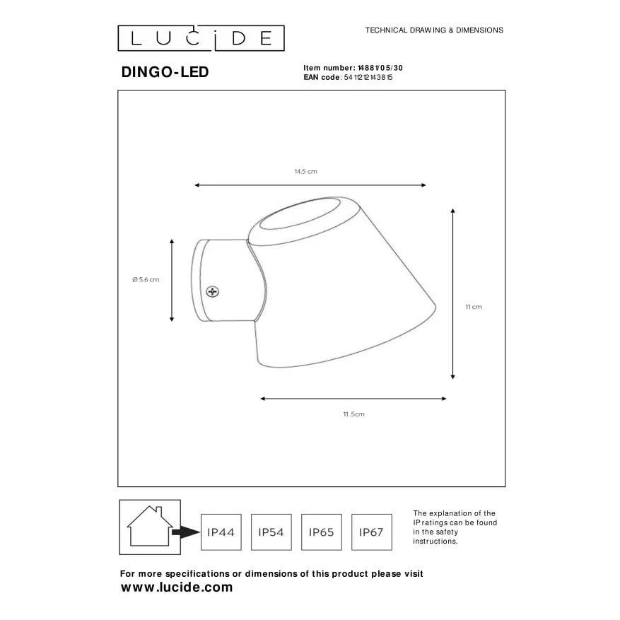 Lucide DINGO-LED – Wandlamp Buiten – LED Dimb. – GU10 – 1x5W 3000K – IP44 – Antraciet