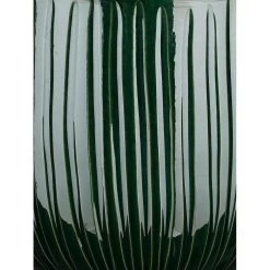 Plantenpot/bloempot van keramiek in de kleur donkergroen met ribbels glans patroon. Diameter 29 cm en hoogte 25 cm. Stijlvolle bloempotten voor binnen gebruik. Serie: Pablo. De stijlvolle pot met een prachtige finish aan de buitenzijde is met de hand