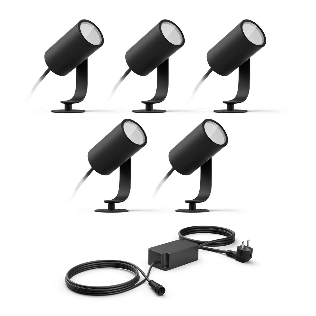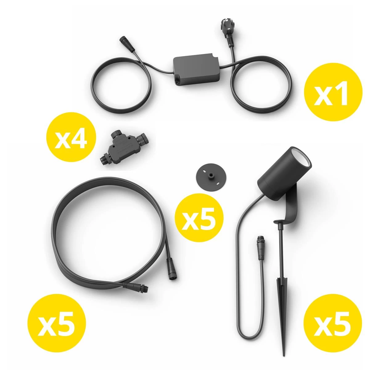 Steek gewoon de stekker in het stopcontact en speel met de 16 miljoen kleuren waarover je beschikt om de je tuin te verfraaien of elke sfeer te scheppen die je wilt. De basisset bevat 10 armaturen en alle kabels plus de voeding die je nodig hebt om aan de slag te gaan.