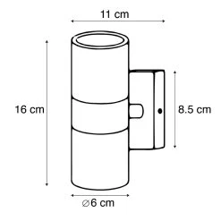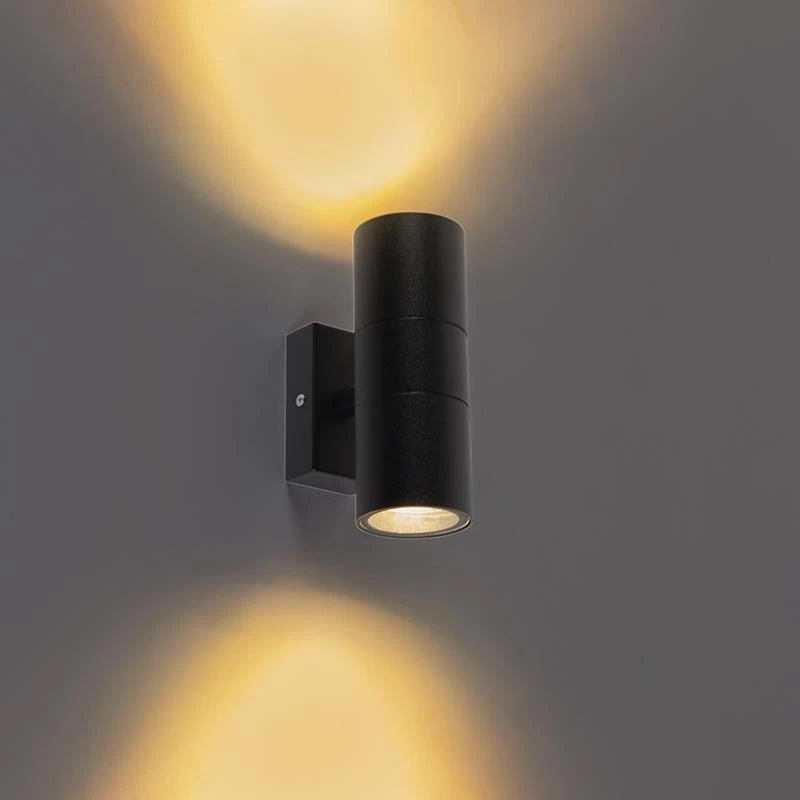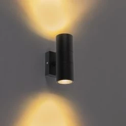 Deze wandlamp Duo is een super functionele buitenlamp met strakke vormgeving uitgevoerd in een tijdloze zwarte kleur.. Het licht van deze lamp straalt naar boven en naar beneden. Dit geeft een prachtig effect op de muur. Met een IP waarde van IP44