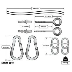 Hang je hangmat of hangstoel gemakkelijk opDit is de meest verkochte montage set voor je Tropilex-product. We bieden deze complete bevestiging aan in drie verschillende producten:- Een zwart touw van 3