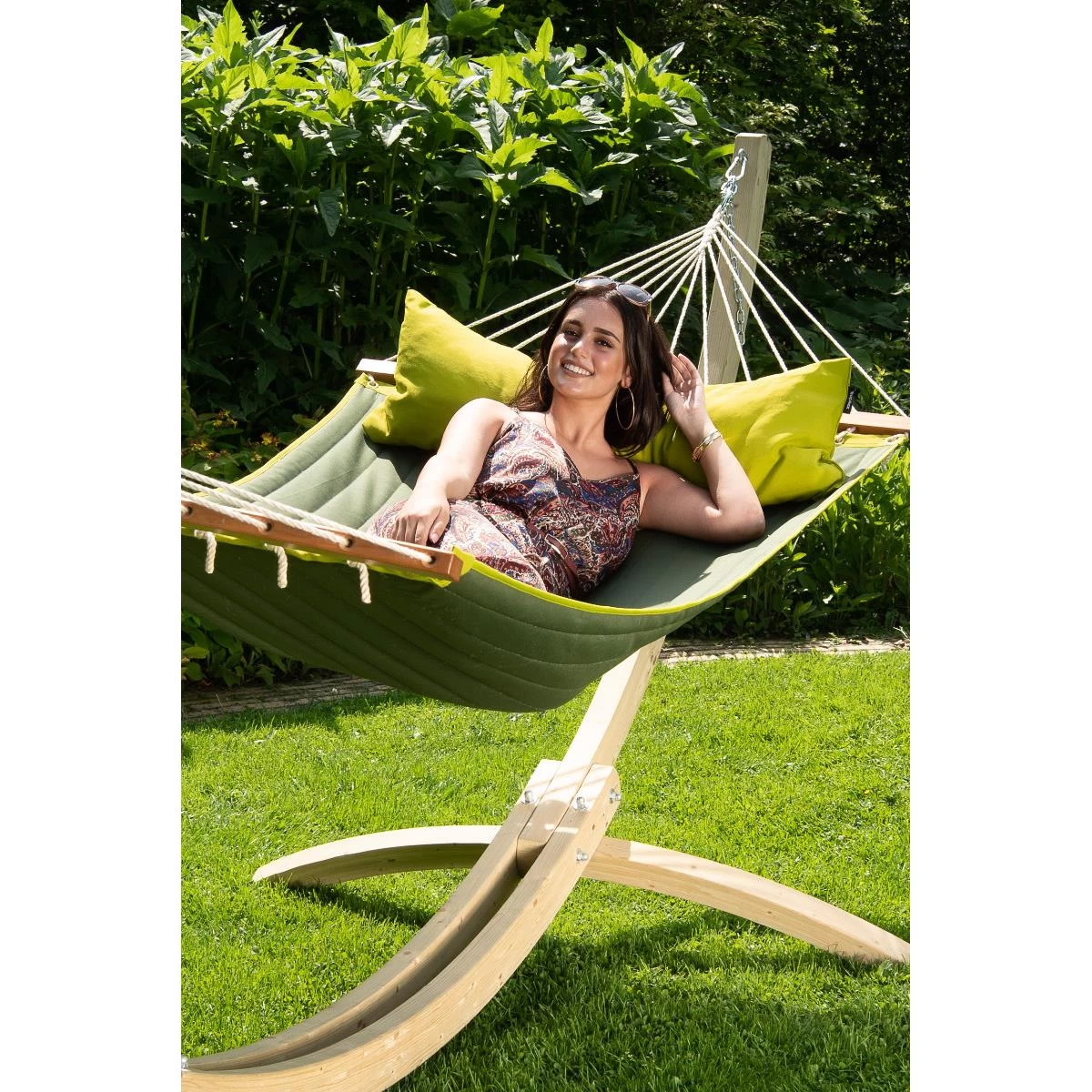 Een aanwinst voor elke tuin!Deze prachtige houten standaard ziet er in elke tuin geweldig uit. Gemaakt van FSC®-gecertificeerd en duurzaam dennenhout.Het hout van deze hangmatstandaard heeft reeds een
